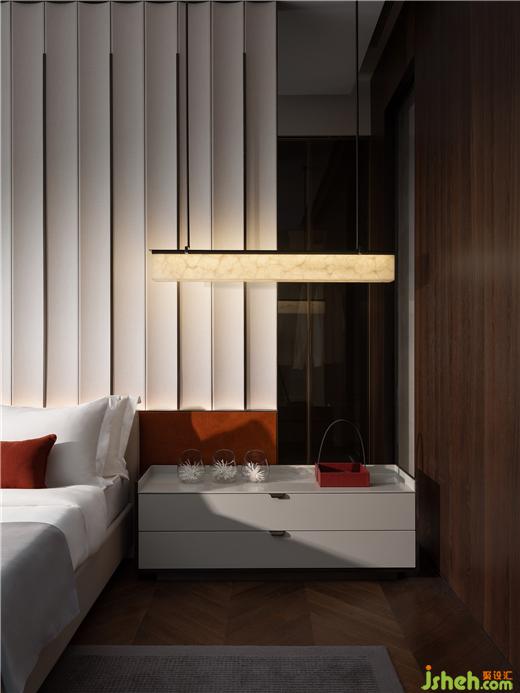 酒店式居住感受,切實(shí)落筆在體驗(yàn)層面,主臥套間可謂對此深度踐行。常州天安別墅設(shè)計主背景顯著的線條韻律、內(nèi)凹的弧度極具包容撫慰之感,清晰可見其與一樓一脈相承之意。非對稱的床頭柜設(shè)計,也蘊(yùn)含著對上下體量、前后交互的思考。搭配兩側(cè)留白,提升感官的從容呼吸。
