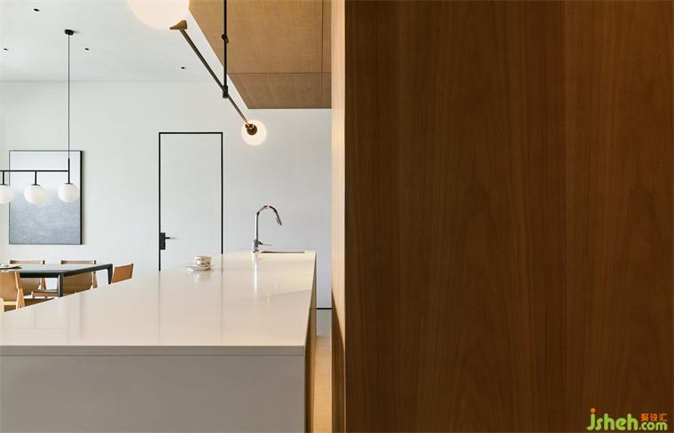 度假居所設(shè)計注重化零為整,廚房以BOX體塊構(gòu)筑溫馨場域,既整合了空間關(guān)系,又預(yù)設(shè)充足的收納功用,在選材和處理手法上則遵循壹舍團隊一貫的克制平衡之道。