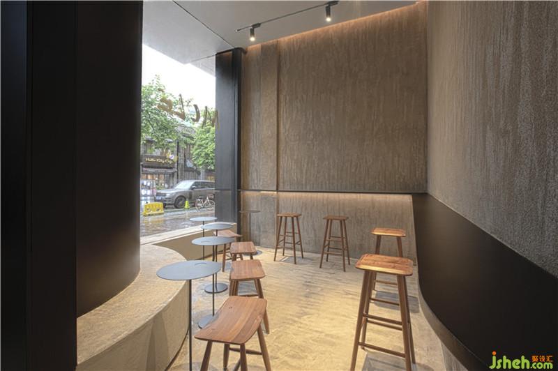 入門口采用半弧形隧道式設(shè)計(jì),讓人有一種進(jìn)入另一個(gè)空間的感覺,可以在這里輕輕坐下來(lái),享受一杯有態(tài)度的茶。