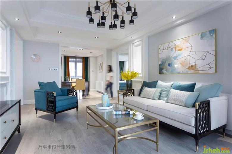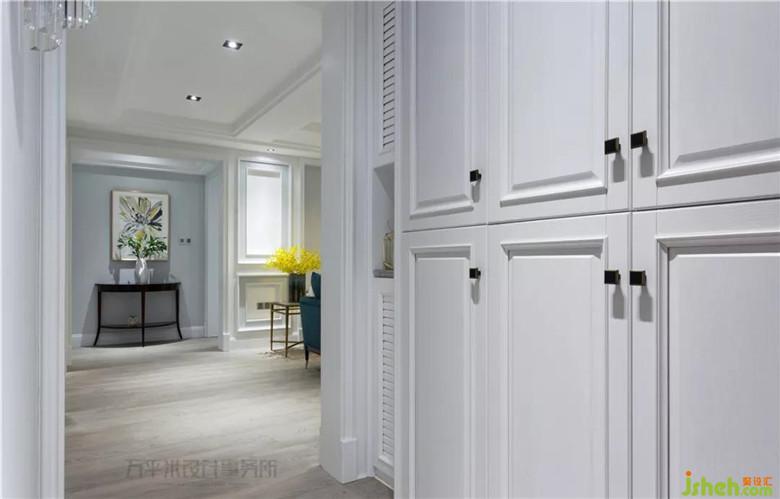 走廊盡頭的繁花裝飾畫作,推門入戶即映入眼簾,為全屋淡雅清新灰藍(lán)色調(diào)帶來芬芳甜美的寫意裝點(diǎn)。裝修公司