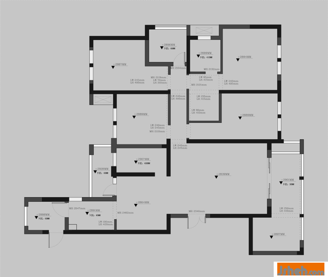 順應(yīng)房型特點(diǎn),于床尾一側(cè)設(shè)置滿墻儲(chǔ)物收納柜。