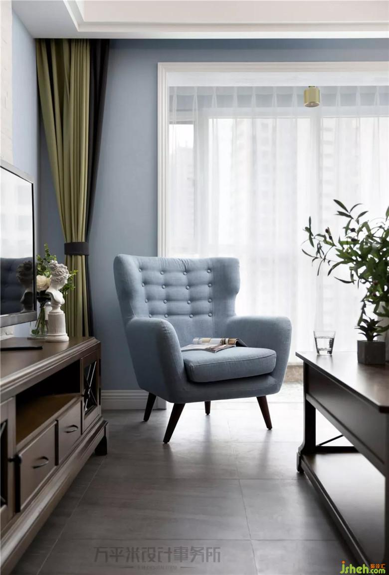 深青與草綠棉麻窗簾撞色,輕松營造出年輕的活力感。皮粉與墨綠的熱帶花鳥元素,帶來異國假日時光般熱情與喜悅。 色澤沉穩(wěn)的木質(zhì)家具搭配鐵藝元素,令輕松的美式休閑韻味自然散發(fā)。將文化石砌出簡單造型,成為文藝感濃厚的電視背景。粗獷自然肌理,映襯木質(zhì)溫暖細膩。