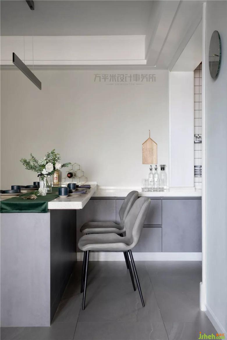 相鄰空間形成一體,功能性及空間感均有提升。對開門冰箱嵌入墻體轉(zhuǎn)角一側(cè),不顯突兀。
