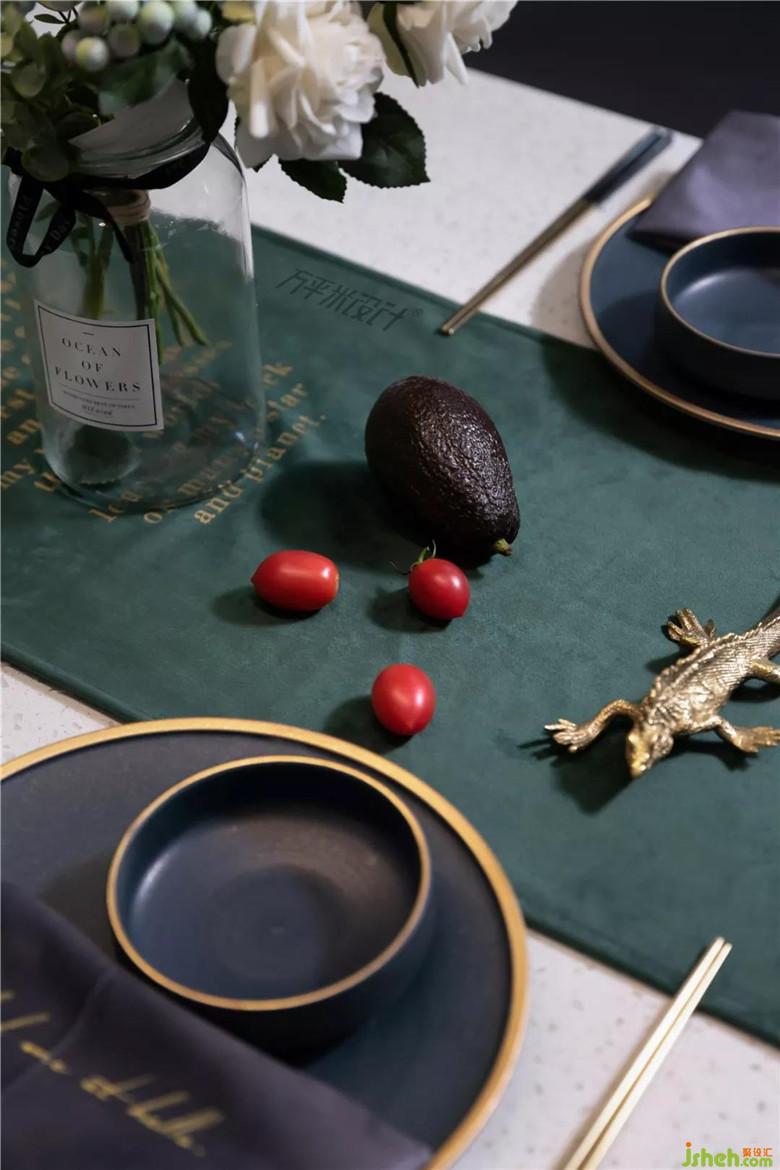 墨綠色的黑板漆隨意擦寫的特性更增添了些許生活趣味性。電表箱藏于不對稱的黑白裝飾畫后,胡桃木與黃銅的包掛,令出入間拿取便利。