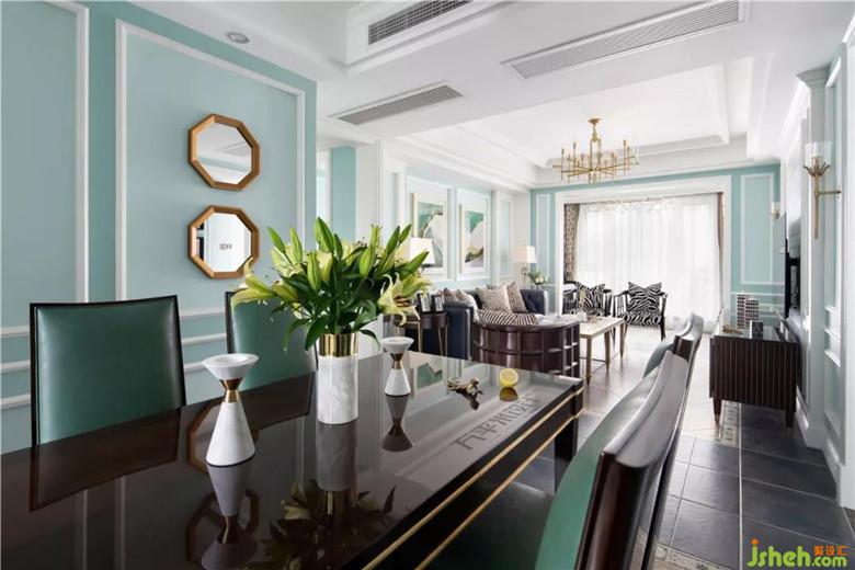兩側(cè)木作造型將沙發(fā)主位內(nèi)嵌式設(shè)置,層次分明更具立體質(zhì)感。家是女主人的名片,她演奏的美妙樂(lè)曲,使這張色彩夢(mèng)幻的名片更添古典魅力??蛷d與陽(yáng)臺(tái)間的原始隔墻內(nèi)移后使陽(yáng)臺(tái)可放置鋼琴。鋼琴頂部吊柜增添收納。定制的灰白大理石馬賽克內(nèi)嵌于美式造型線框內(nèi),使大面積淺色觀影背景視感舒適亦有格調(diào)。