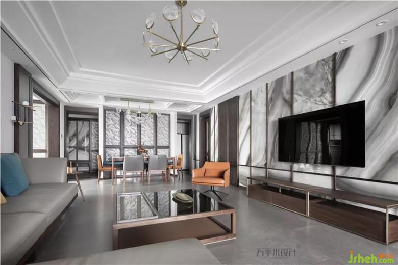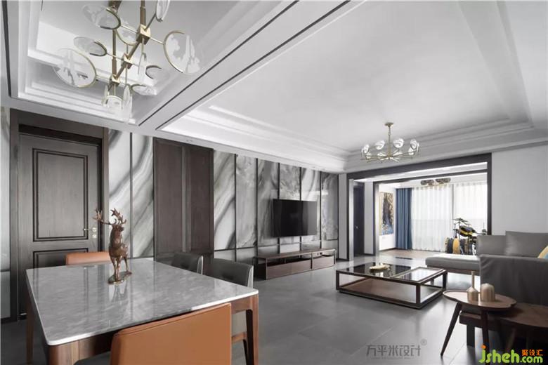 宜設而設,精在體宜。刪繁去奢,繪事后素。因景互借,移步換景。方正而利落的橫縱線條于低調(diào)的灰色調(diào)中淺淺勾勒,使全屋中心的客餐廳區(qū)域顯得干凈通透,寬敞明亮。