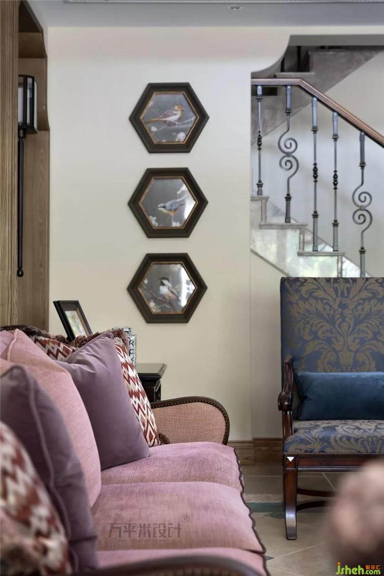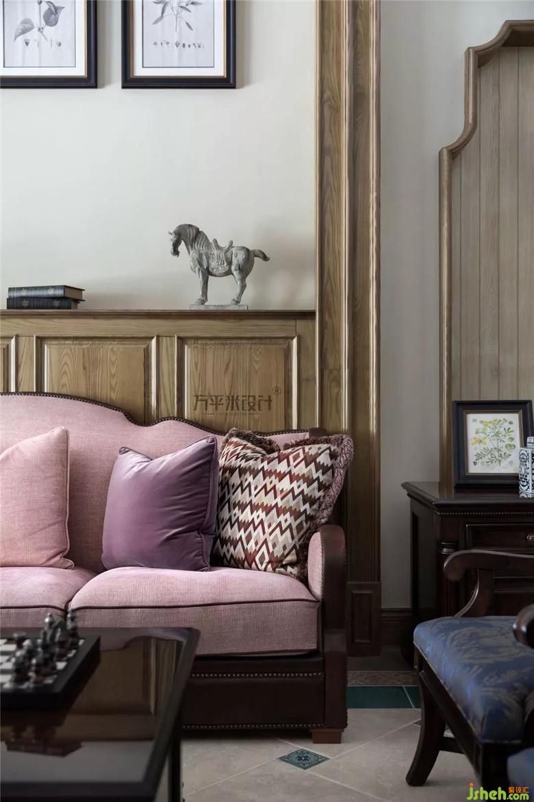 茱萸粉的古典沙發(fā),綴以略帶灰度的香芋紫,布藝和絨面交融的質(zhì)感,相互印襯。