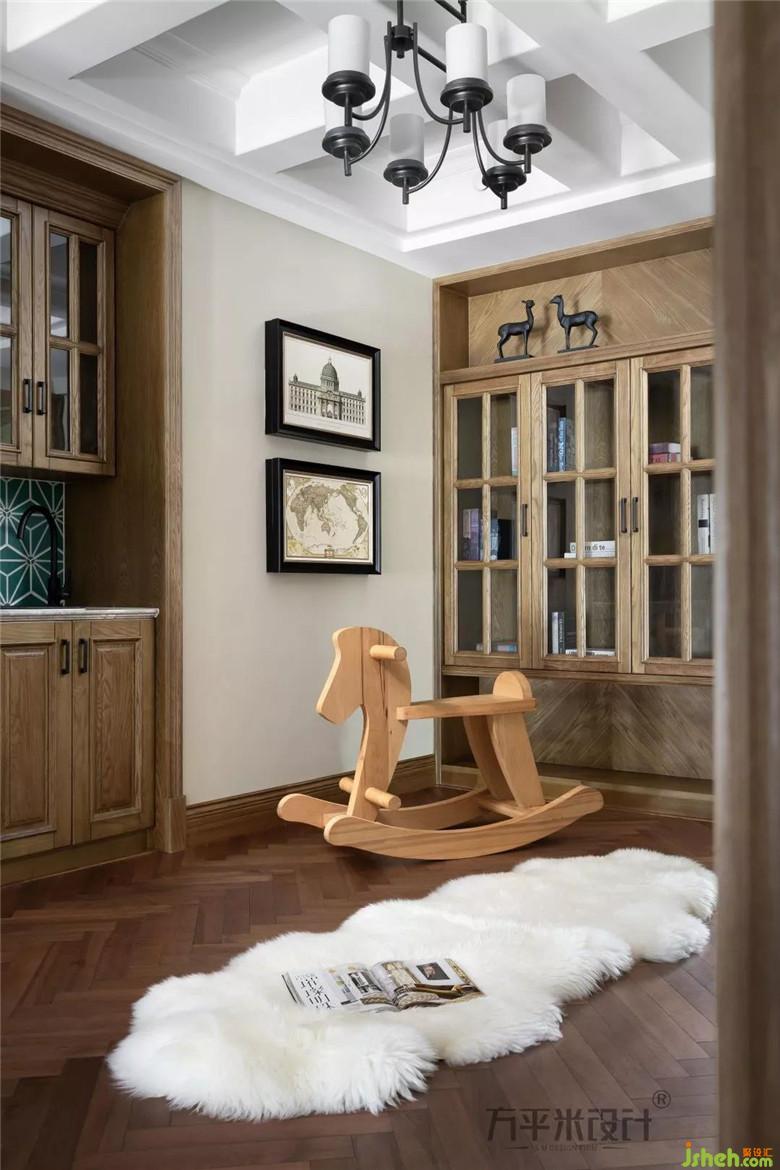 家庭廳成為二層日常居所的交流區(qū),墻面米色乳膠漆與白色吊頂進(jìn)行分色,井字格吊頂完美的和諧了凸出來(lái)的主梁。茶水柜的設(shè)置,滿足了二層整體空間的生活需求。旁邊緊挨著小孩房,也為孩子提供了充足的活動(dòng)空間,方便家人對(duì)兩個(gè)寶貝的照看。