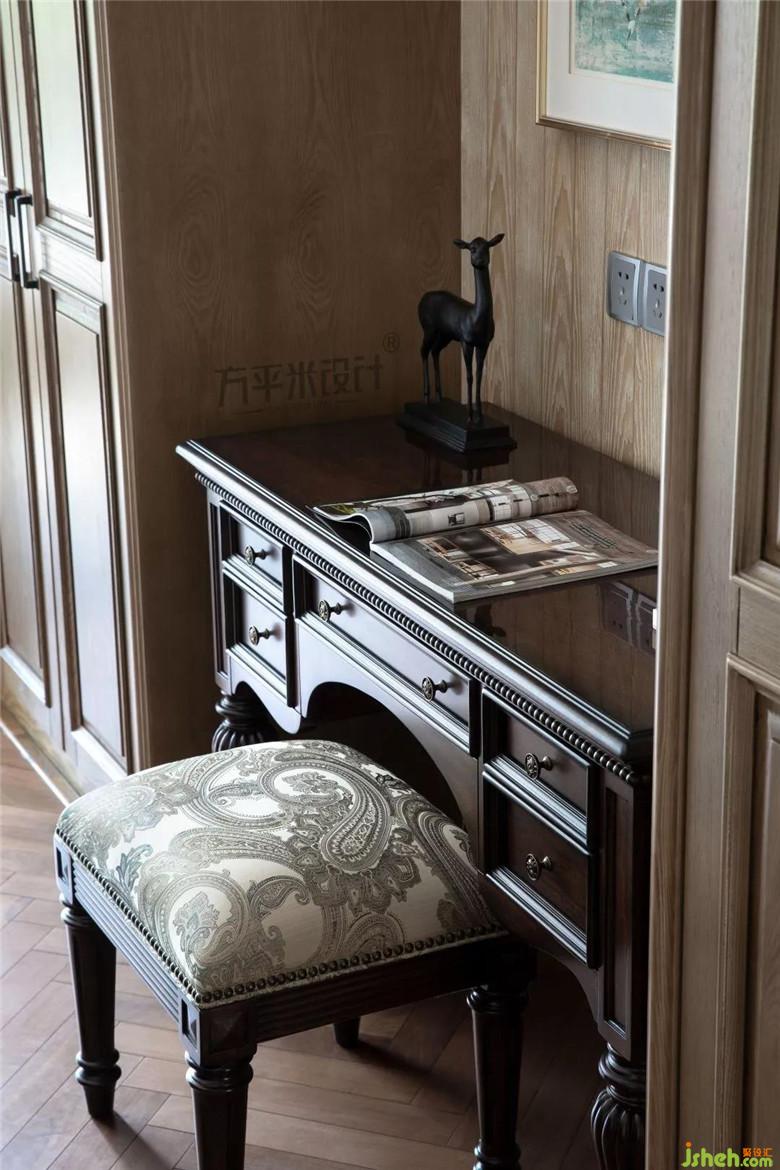沉著冷靜的色調(diào)更顯屋主沉穩(wěn)內(nèi)斂的調(diào)性追求,梳妝臺內(nèi)嵌入衣櫥,在每個清晨都會迎來它的主人,妝點著生活的每一場精致。