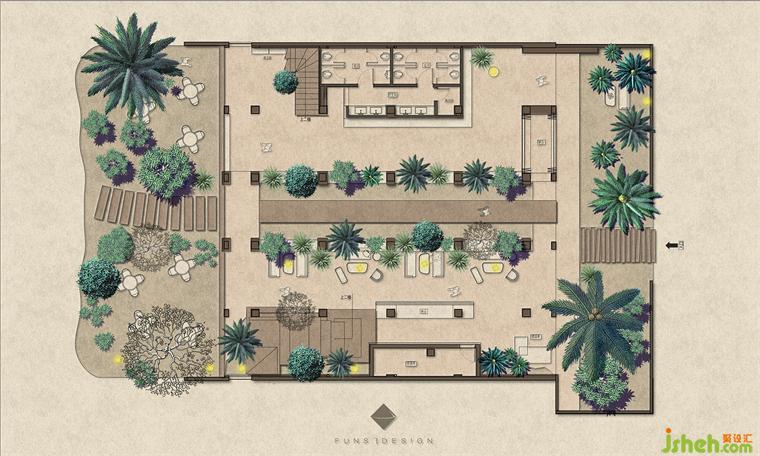 小庭院內(nèi):庭院以樹木或紅磚環(huán)繞,模糊了室內(nèi)與室外的邊界。這個(gè)迷人的庭院讓您感受到與自然的連接,身臨其境的去品味這份寧?kù)o與美好。