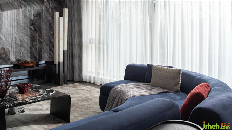 流動的沙發(fā)曲線,克制的裝飾線條,是優(yōu)雅與冷靜的完美平衡。撞色之間,有趣的互動愈加明顯,形成獨特的空間節(jié)奏。