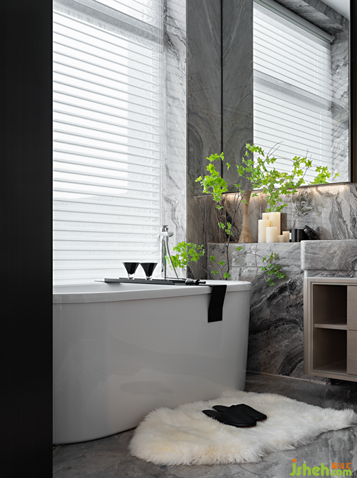 主衛(wèi)設(shè)計增加了空間的尺度感,以大面積的石材為底,一抹綠植點綴其中,為空間增添一絲生趣。