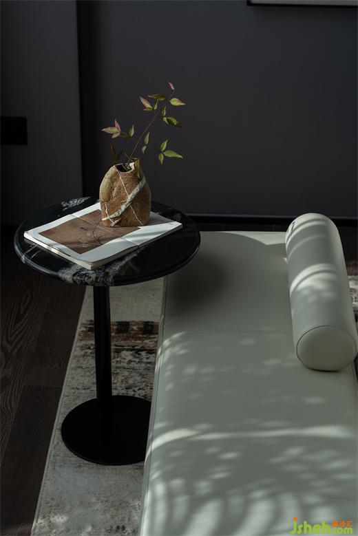 詩意的呈現(xiàn),質(zhì)樸的雕琢,次臥以純粹的設(shè)計手法平添幾分松弛感。一尊花瓶,三兩枝葉,則為空間注入無限的情意與浪漫。