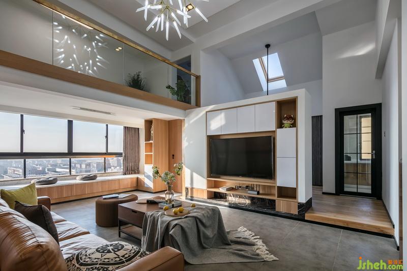 本案例為頂層挑高戶型,室內(nèi)設(shè)計師在原建筑的基礎(chǔ)上,對空間布局做了整體重塑。優(yōu)化了動線、通風(fēng)和采光。