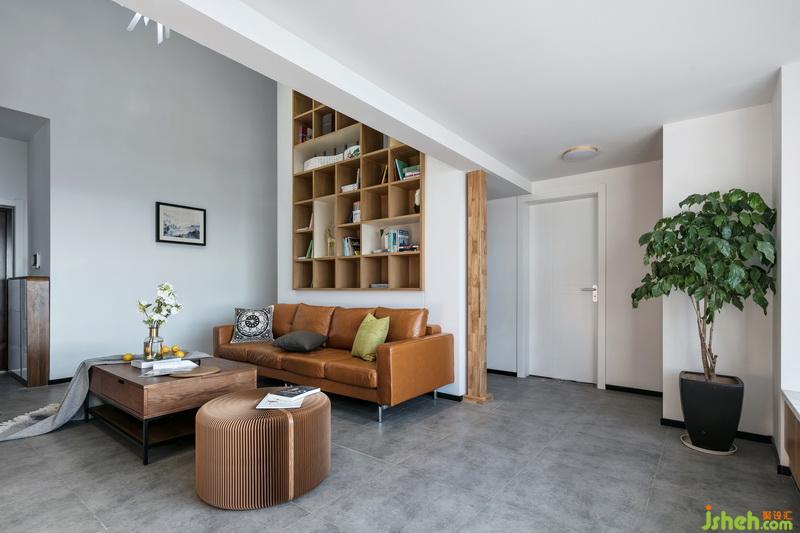 室內(nèi)設(shè)計師將原有的大陽臺與客廳打通,合并為客廳的一部分,這不僅讓客廳的會客功能強化,同時也加大了自然光線的引入,讓整個客廳空間都灑滿陽光;一面長長的飄窗,搭配著原木色書架,不僅讓整個空間洋溢著通透又休閑的氣息,也使客廳在視覺感官上顯得很開闊;這一面飄窗,讓生活多了一份愜意,在閑暇時間,看看書、喝喝茶、曬曬太陽。讓生活回歸自然,清新舒適。