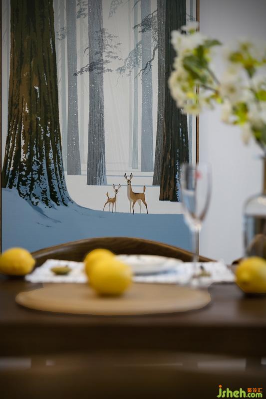 客餐廳空間的劃分不再局限于硬質(zhì)磚墻,電視墻采用柜體作為隔斷,儲物,陳設(shè)的綜合功能的設(shè)計,既保證了客餐廳的采光通風(fēng),又使客餐廳的空間在一定程度上保證了空間的延展性;
