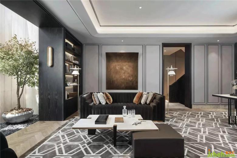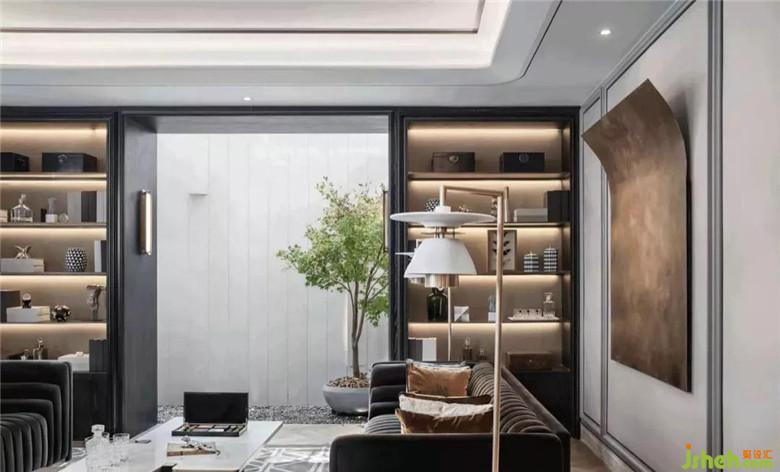 而為了打造一個(gè)西情東韻的舒緩空間,為夾層塑造了新的秩序:男主人的書房區(qū)域,一派線條硬朗的質(zhì)感天地。