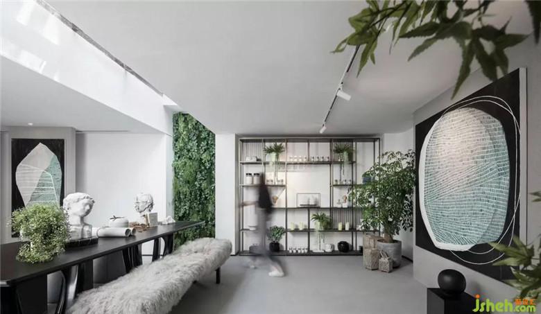 大面積灰白肌理墻面近一步感受留白的空間意義。