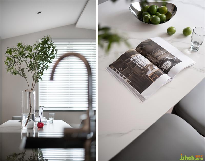 私宅設(shè)計(jì)半開(kāi)放式的餐廳布局尤為開(kāi)闊通透,增加空間的互動(dòng)性,使廚房烹飪者與客廳玩樂(lè)者無(wú)界限交流,煙火氣中烹出其樂(lè)融融的光景。