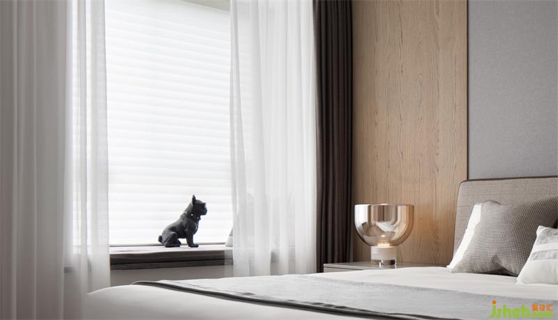 臥室里天然木系的背景與略顯張揚(yáng)的燈飾,無(wú)不彰顯主人的個(gè)性與品位,不同的美學(xué)與機(jī)能平衡之間,沉淀出使人內(nèi)心安定的空間力量。