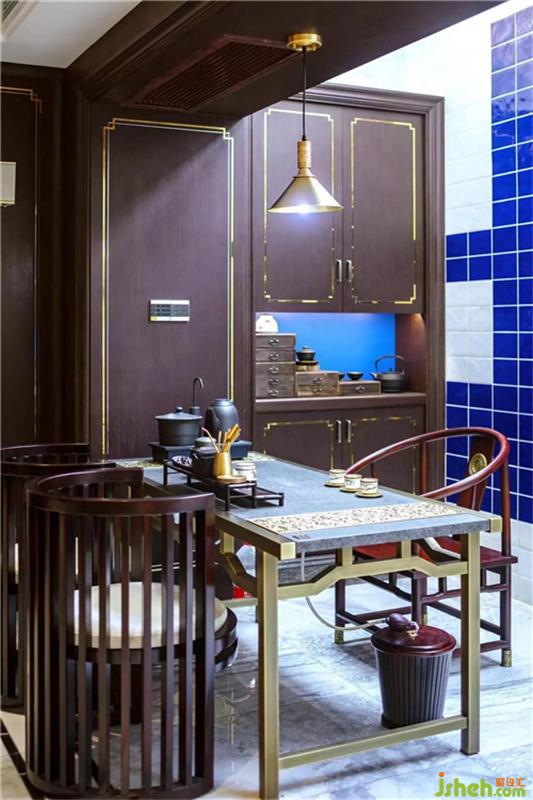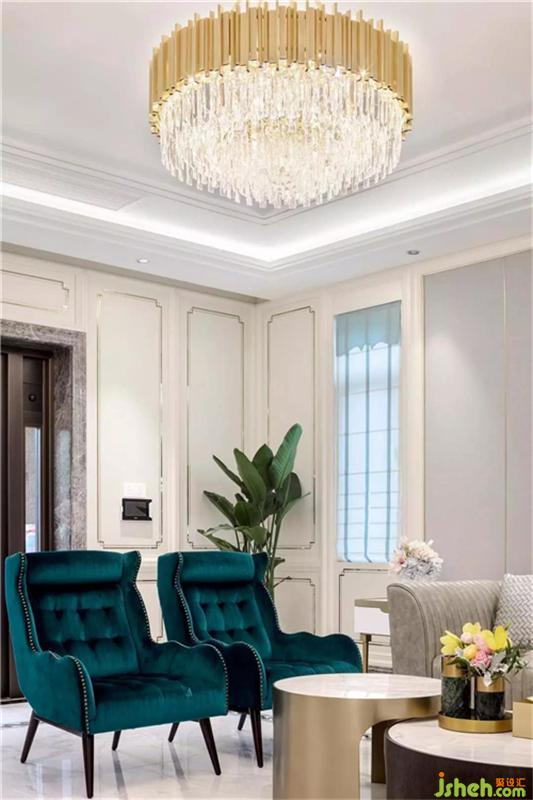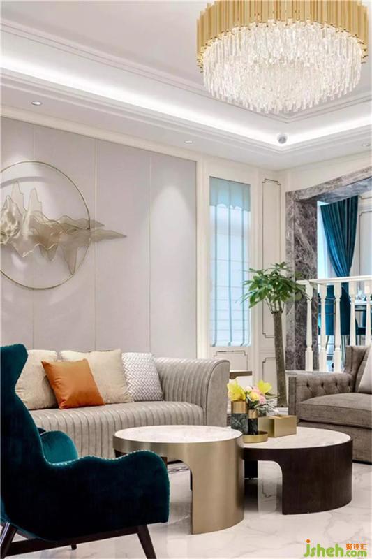 林語堂先生曾說:“在藝術(shù)作品中,最富有意義的部分,即是技巧以外的個(gè)性?!倍鴤€(gè)性,則是不要千篇一律。本項(xiàng)目軟裝陳設(shè)的主題是創(chuàng)新融合,跳色的配色處理,和家具的混血風(fēng)格,提煉傳統(tǒng)家居中的經(jīng)典元素,雜糅進(jìn)現(xiàn)代化家居設(shè)計(jì)中,以現(xiàn)代人的審美需求來打造富有韻味的家居,讓含蓄古典的優(yōu)雅氛圍與清雅的現(xiàn)代生活美學(xué)并存于一個(gè)空間。形態(tài)簡潔且不失尊貴感的弟子規(guī)茶幾,造型端莊含蓄的圈椅,透露出居住者的文化底蘊(yùn)和良好家風(fēng),距離是讓一切回歸美好的開始,人與家具宜人的尺度感,在于相互顧盼、彼此生動(dòng),隱隱的“人文關(guān)懷”,讓家開始有了靈性。每一個(gè)空間的色調(diào)都在傳遞的是簡單和放松,家居的線條處理也令室內(nèi)的整體視覺更加協(xié)調(diào)。刪繁去奢的家居陳設(shè),呈現(xiàn)的是富有格調(diào)而不顯壓抑的家居氛圍。張愛玲說:“中國人好吃,我覺得是值得驕傲的,因?yàn)槭且环N最基本的生活藝術(shù)?!庇谑遣惋嬑幕镉辛藮|方文化的精致與團(tuán)圓。藍(lán)色是夢想的底色,它被賦予了感性的意味,所以,整個(gè)空間便是在一種不失精致的柔軟與簡練之間發(fā)生平衡,絲絨面料的溫暖均衡了石材的冷峻質(zhì)感,平衡出了最雅致的家庭氛圍??酥频牧舭啄茏屓梭w會(huì)生活的美好以及藝術(shù)的美感。墻面與地面不同的材質(zhì)和肌理,在同色系之間產(chǎn)生了層次和節(jié)奏的變化。一副20世紀(jì)Matisse馬蒂斯野獸派的抽象風(fēng)景,點(diǎn)亮整個(gè)空間。主臥的藝術(shù)紋理家具搭配富有肌理感的墻布,橫豎比例的白色框線呼應(yīng)室內(nèi)金屬質(zhì)感的燈飾,讓人的心中啟醒平和與滿足。燈光是黑夜里最明亮的溫度,而“家”是這個(gè)世間最偉大藝術(shù)。