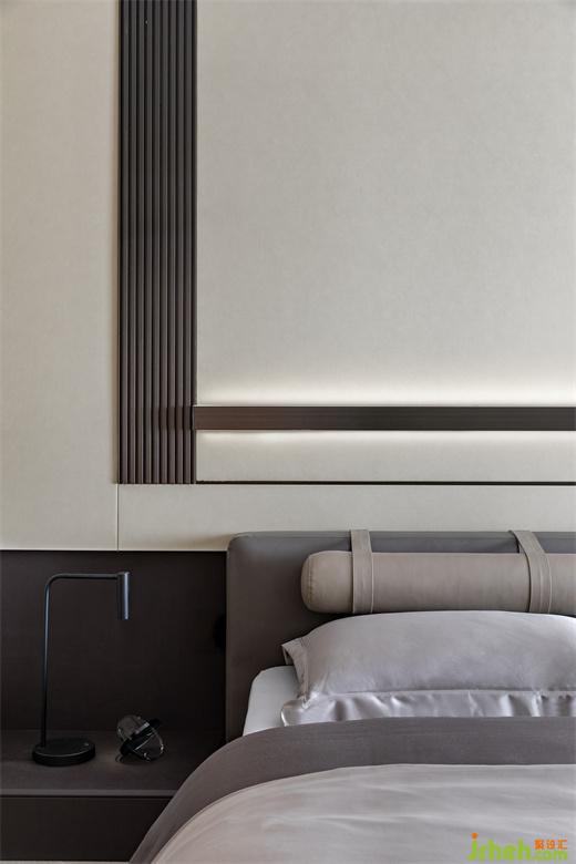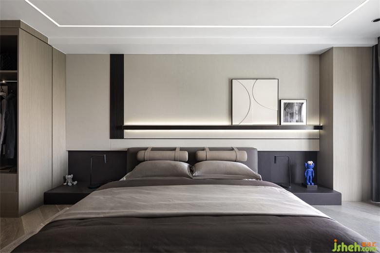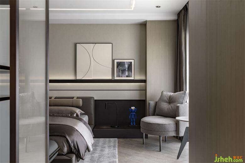 樣板房設(shè)計臥室設(shè)計動靜結(jié)合,對整個二層空間進行合理的劃分,減少生活中流動線路的紛擾。空間內(nèi)線與塊的結(jié)合溝勒出時尚的魅力,無主燈使得空間設(shè)計簡約整潔,而射燈的燈光又滿足各功能區(qū)域的光源需求,使得空間純凈舒適,有序歸整。軟裝表達上將灰色發(fā)揮到極致,糅合比例到最佳,點綴藍色KAWS,營造簡約奢華的風格,同時空間線條的深淺疊加,使空間深邃富有質(zhì)感。使得空間深邃且富有質(zhì)感。