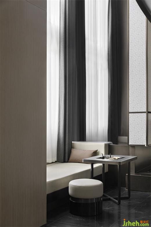 樣板房設(shè)計空間大膽采用黑色不銹鋼裝飾,中性色木飾面,布局簡約大氣,內(nèi)容精煉有趣。在軟裝上,用“精致”二字作為關(guān)鍵詞,方便大家更好地理解我們的主題思路。藝術(shù)裝置吊燈從上空懸垂而下,一束光將訪者邀入至臻的純凈中,璀璨光感增加空間靈動的質(zhì)感和流暢的現(xiàn)代感。充滿尊貴氣息的棕色面料,是自帶高級感的;空間白色理石茶幾的光澤感,活力藍色調(diào)呈現(xiàn)的活潑輕快之感,為空間注入時尚而別致的氛圍;黑橡木色平衡了視覺空間的色彩搭配,給人以冷峻、酷炫之感。