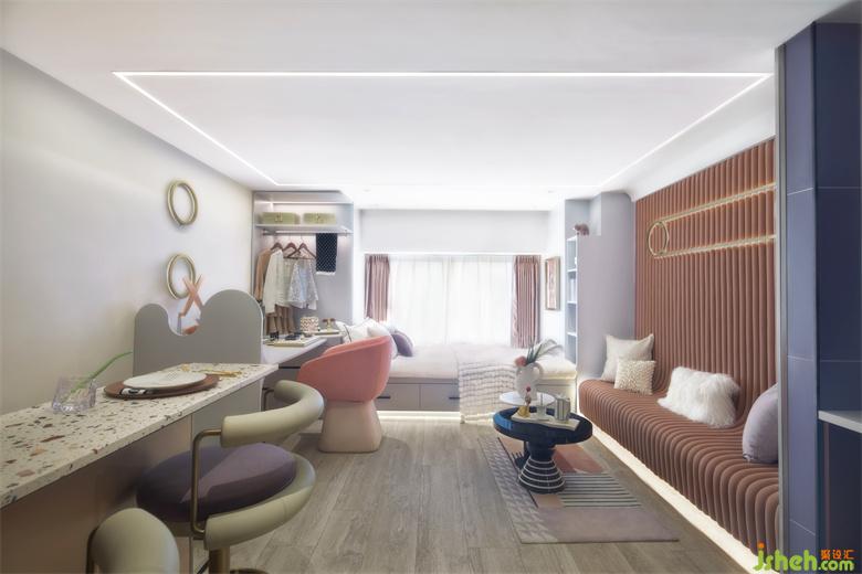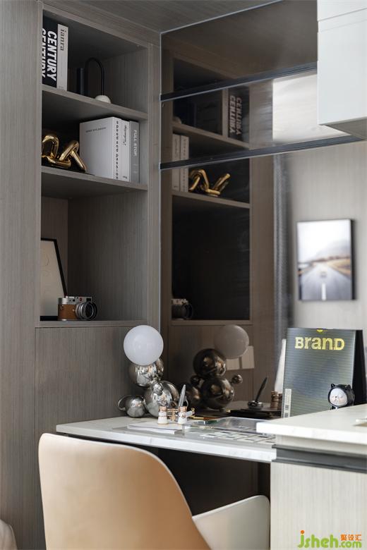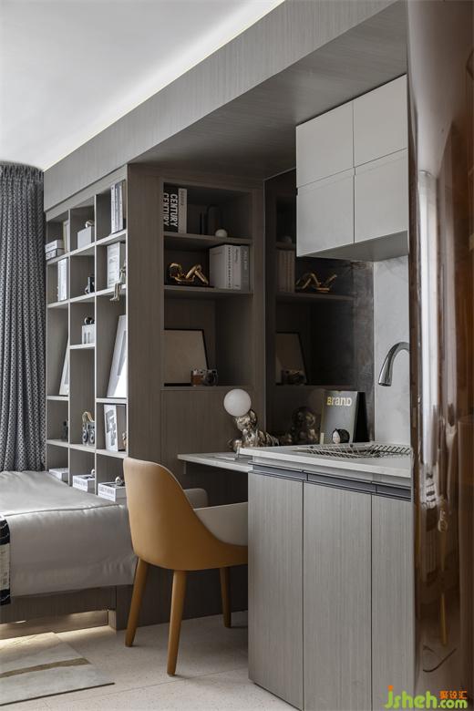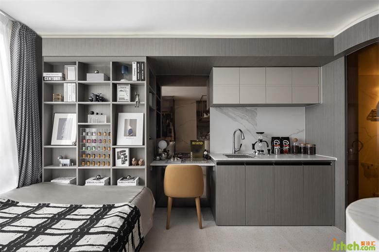 入口廊道處對整個空間布局一覽而進,雅白和淺咖色調(diào)彰顯出空間時尚優(yōu)雅的特點。樣板房設(shè)計床品采用親膚質(zhì)地的材質(zhì),為主人公打造一個舒適的睡眠環(huán)境……衣柜內(nèi)陳列了主人公高品位的服裝、眼鏡、手提包等,床邊利用小邊幾打造一個休閑氛圍,吧臺區(qū)域利用空間做二層金屬收納平臺,滿足生活必需品的擺放和收納,使空間時尚沉穩(wěn)中增添秩序感。衛(wèi)生間采用弧形角度,茶色弧形玻璃隔斷在滿足私密性的同時,使得線路流動空間更流暢。廚房以咖啡為主題,我們加以咖啡機、咖啡壺等飾品烘托氛圍,彌漫咖啡香氣,掃走一天的疲憊……書桌區(qū)以攝影為主題,木質(zhì)肌理飾面板做展示柜,為居住者帶去多樣的生活體驗感,擺放攝影作品和相機,采用了設(shè)計感極強的書椅及臺燈來襯托主人公藝術(shù)品味....主人公業(yè)余喜歡交流攝影技巧和賞析攝影作品,喜歡與更多的攝影愛好者一同分享攝影的魅力!把日常生活中稍縱即逝的平凡事物轉(zhuǎn)化為不朽的視覺圖像。攝影就是記錄,只要是熱愛生活,就可以找到“真愛”....