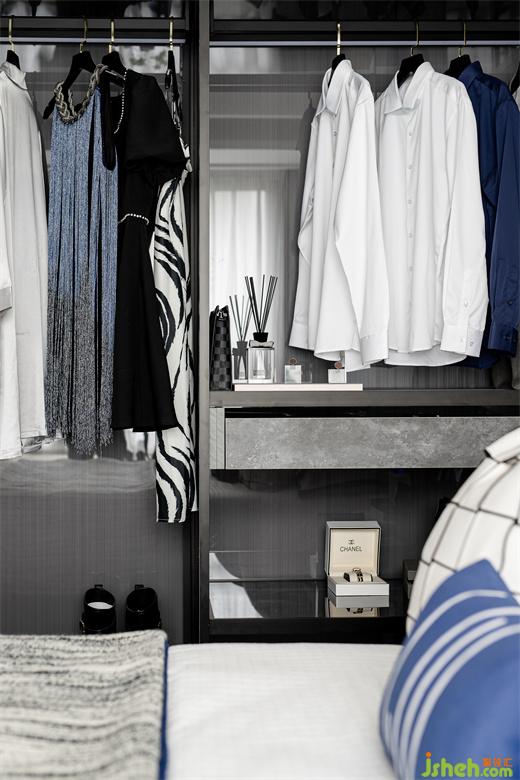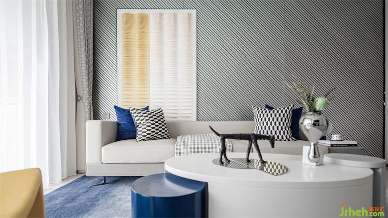 樣板間設(shè)計(jì)開放式欄桿的陽臺可以更好的親近大自然,藍(lán)與灰的張力撞擊也加深著陽臺空間的質(zhì)感印象,讀書、休閑、逗貓,享受來自大自然帶來的寧靜閑暇。