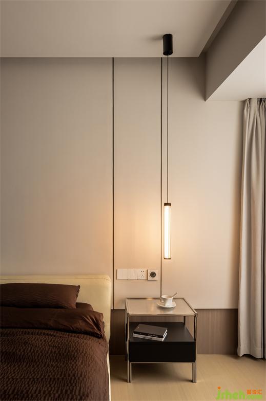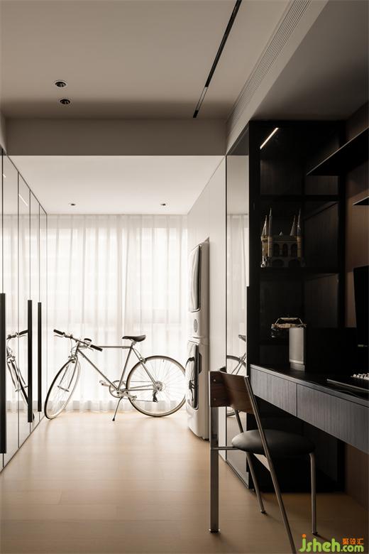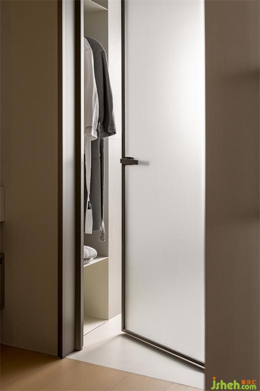 Preserve only one bathroom of home space, separate the bathroom from the master bedroom, and rearrange its functions to create a pure sleeping area. The gentle colors and suspended ceiling collide with materials, outline lines and blocks, and not only meet the needs of daily life, but also create a space atmosphere.