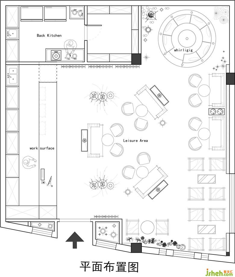 進(jìn)門處凹進(jìn)來的大門,給到整體門面的不一樣效果。