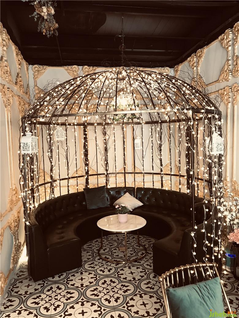 玄關(guān)進(jìn)門處中間有白鹿為裝飾品,鮮花小鹿指引您進(jìn)入另外的夢幻仙境。一進(jìn)大堂休閑區(qū),第一眼會給天花的圓頂造型深深吸引了,這是本飲品店的形象造型。