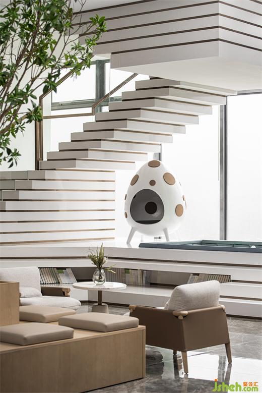 隨處可入座的階梯臺(tái)階設(shè)計(jì),讓暢談更加隨意,人與人之間的距離被拉得更近。通過文化的慰藉,獲取精神層面的力量,空間的體塊重疊、穿插,或有序地向上延伸,建立無限的維度,將意識(shí)形態(tài)貫穿于場景中,以連續(xù)性的感知聯(lián)接人與空間的關(guān)系。