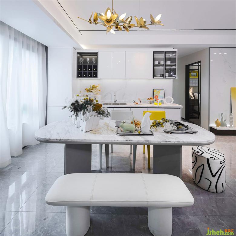 打造暢快且能全家互動(dòng)的西廚空間,保留能隔絕油煙的中廚。在亮麗的色彩點(diǎn)綴間,拋灑一日的凡塵。圍繞都市人居的美好生活情境,創(chuàng)意的細(xì)節(jié)擺件與清新的自然植物調(diào)和出有溫度與情感的空間圖景。