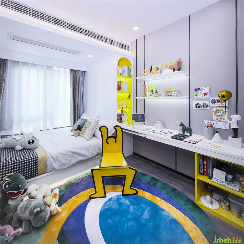 兒童房以男孩的涂鴉為靈感,提取今年潘通流行色,以黃色灰色為主傳遞細(xì)膩的質(zhì)感,給予視覺沖擊,通過對線條與色塊的巧妙應(yīng)用營造出穩(wěn)定、協(xié)調(diào)、溫馨的兒童空間感受,給予她們一個快樂的童年.