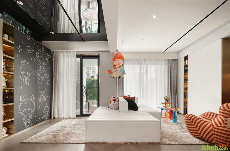 樣板間設(shè)計(jì)超寬敞的公共空間,保證了大人活動(dòng)和兒童玩耍學(xué)習(xí)的兩不誤,陪孩子玩耍學(xué)習(xí),也不耽誤爸媽健身、刷手機(jī)?;?dòng)空間兼游樂(lè)空間,空間互動(dòng)性更好,趣味性更強(qiáng)。