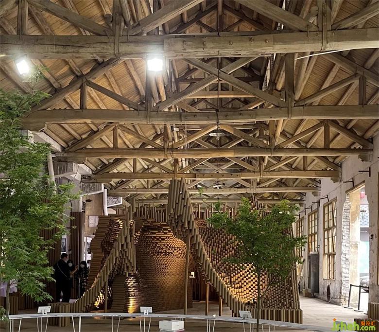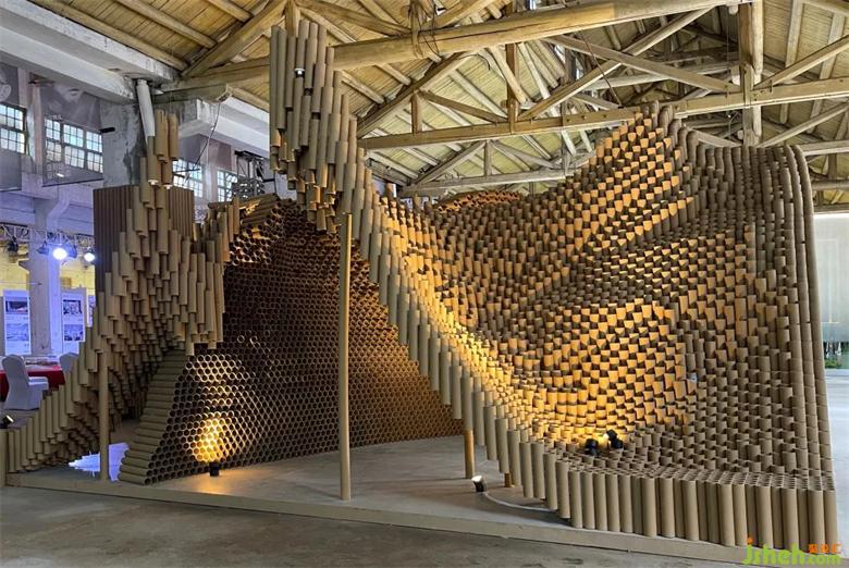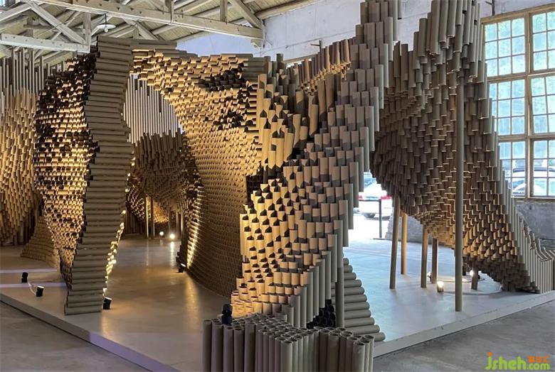 作品的海力設計師,從堆砌在倉庫中繁多的硫酸紙筒、以及在疫情之下社會的變化中獲得靈感。雜亂的堆疊,往往給人以“廢墟”之感,但只要簡單的變化,就能獲得“構建”般的重生。