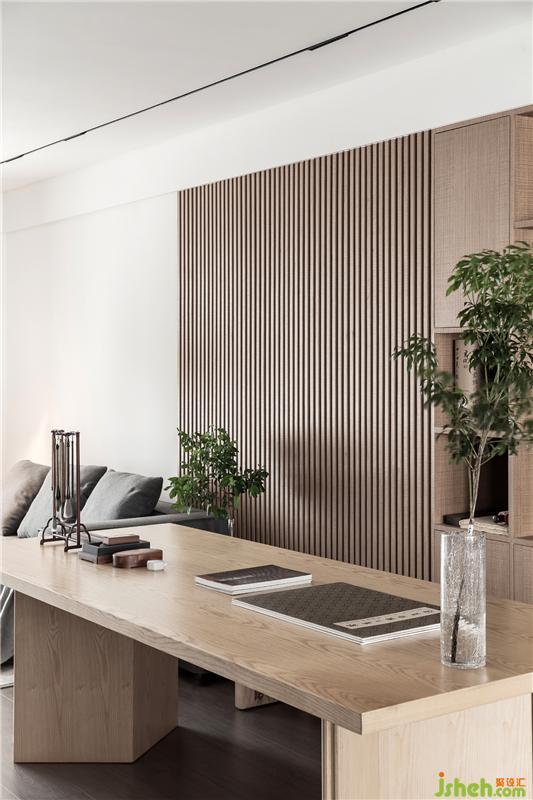 超長桌面的設(shè)計滿足了男主人想要開闊的寫書法需求,同時兼并接待朋友功能,與女主人互相不打擾。