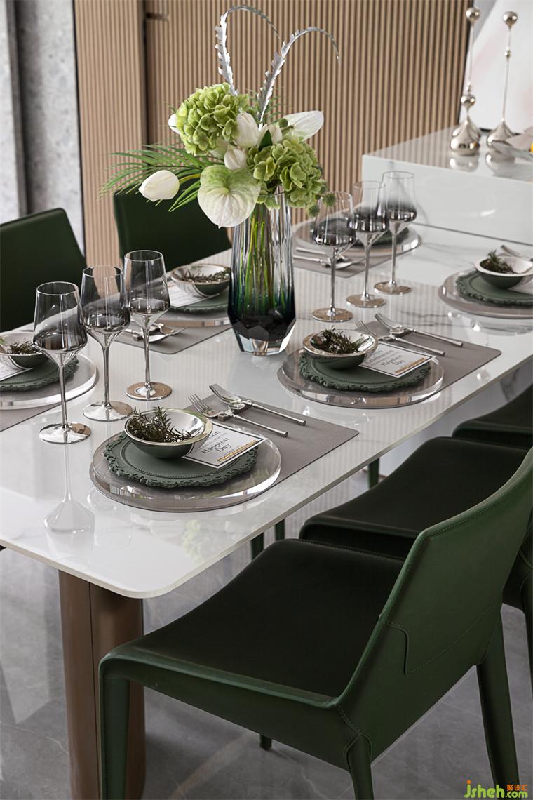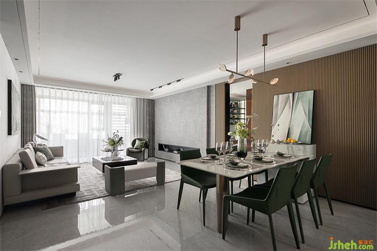 相鄰空間的轉(zhuǎn)換松弛而有節(jié)奏,客餐廳一體化設(shè)計,樣板房設(shè)計讓公共區(qū)域成為“社交型”空間,隨著時間場景的轉(zhuǎn)換,場域緩緩釋放出"物我相融"的和諧感。
