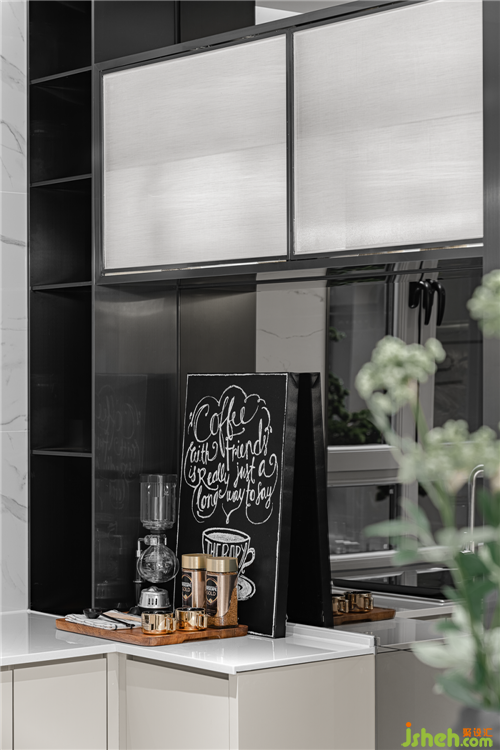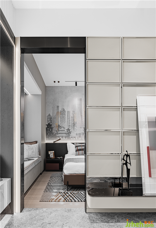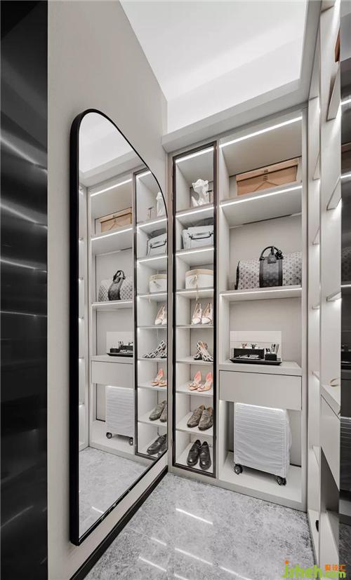空間色調(diào)在儲物間得到延續(xù),陳列組合的設(shè)計手法,將“品味”與“生活”于鏡中一同展示出來。