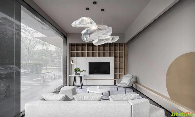 會(huì)館的前廳是一個(gè)休息區(qū),面向庭院的一側(cè)是通透的大玻璃,上海會(huì)所設(shè)計(jì)庭院中的花草樹(shù)木爭(zhēng)相躍入眼簾。