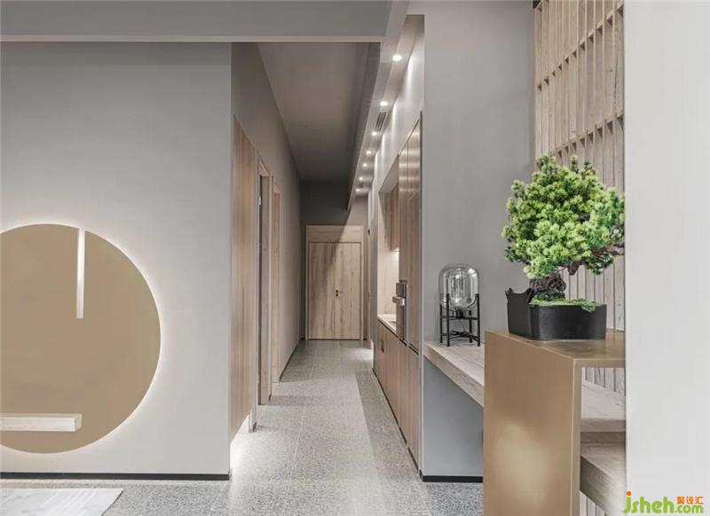 空間中的墻面與天花使用了柔和的灰色調(diào),不過(guò)于明亮也不過(guò)于深沉,木紋也是自然肌理的真實(shí)表達(dá)。只為了不引起情緒的波瀾,希望走入空間中的人內(nèi)心能足夠平靜放松。