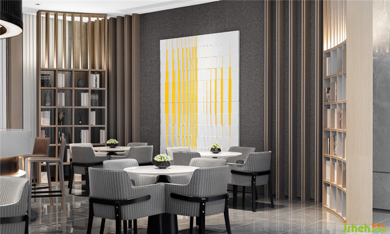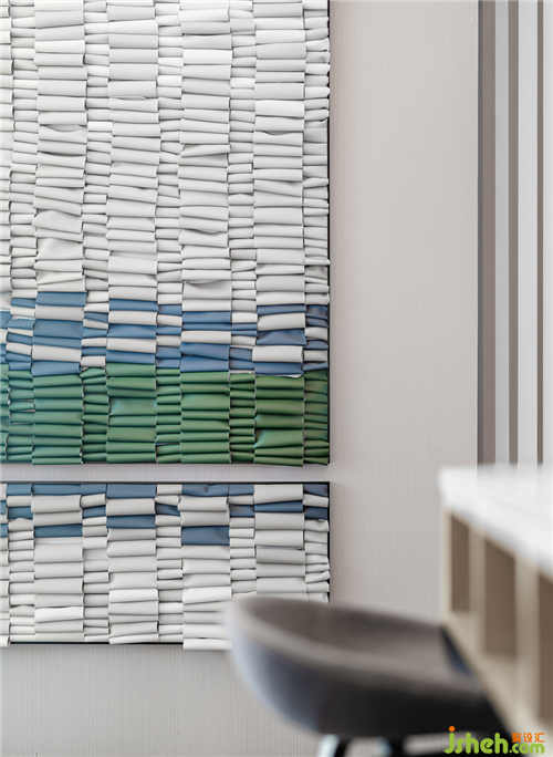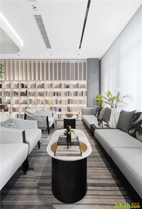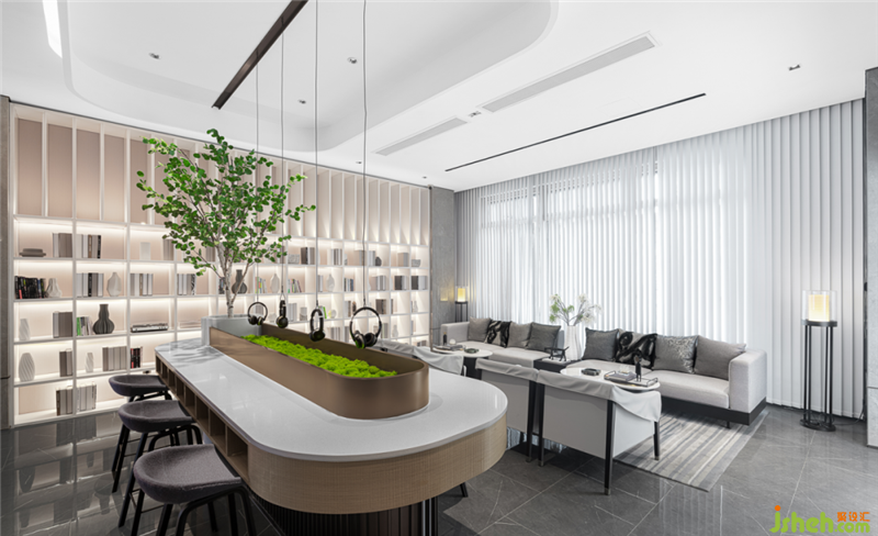設計師在直線條的基礎上,引入新的體塊造型元素和軟裝陳設,為洽談區(qū)塑造更多的功能面貌,突破了傳統(tǒng)洽談區(qū)的單調,使人眼前一亮。