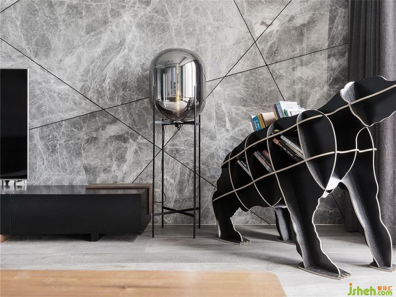 幾何線條切割后的大理石背景墻,簡單又富有內容,不需要過多裝飾,就很好看。