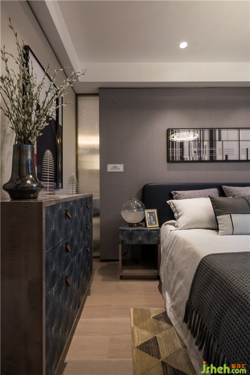 客臥設(shè)計(jì)平和淡雅,彌漫著靜謐安寧的氛圍。低調(diào)柔和的淺灰色調(diào),知性溫馨、大氣簡(jiǎn)約且不乏時(shí)尚的軟裝元素,江西樣板房設(shè)計(jì)詮釋著主人對(duì)美的品味追求與超凡脫俗的氣質(zhì)。