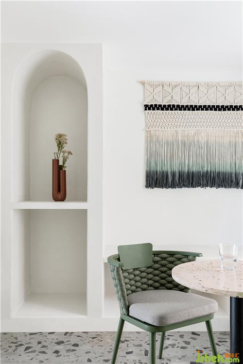 埂上設(shè)計(jì)在軟裝上規(guī)避過(guò)多雜飾與設(shè)色,在白色與木色的基調(diào)上,用別致的吊燈、彩色陶罐等圓潤(rùn)的弧形單品裝點(diǎn),令材質(zhì)的肌理在細(xì)膩與粗糲之間發(fā)生著對(duì)話,質(zhì)實(shí)而空靈,成為空間意境營(yíng)造的最佳注腳。