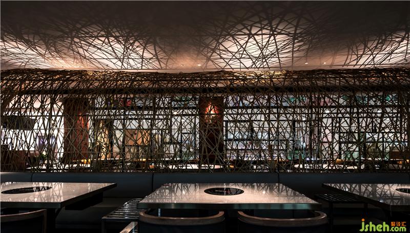 無錫氤氳的水墨山水帶給我們美好的體驗(yàn),而我們想將這種美好在空間里呈現(xiàn),竹子作為核心的設(shè)計(jì)元素貫穿其中,以不同的方式在空間活躍,鏡面映射出竹影,竹子的虛實(shí)變幻成就了空間的氣韻,“清風(fēng)恰幾許,竹影入畫來”營造出幾分東方的寧靜和優(yōu)雅。餐廳設(shè)計(jì)