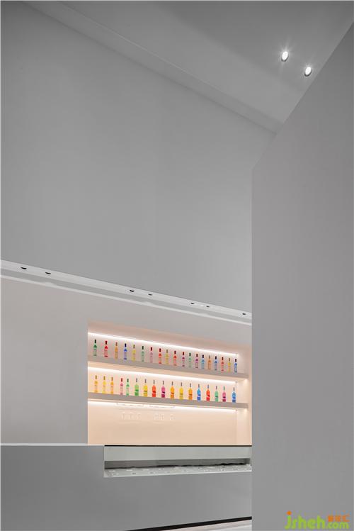 從場(chǎng)景氛圍入手,在吧臺(tái)區(qū)展示的線性照明下,設(shè)計(jì)通過各色酒瓶的有序陳列組合成碰撞的色彩關(guān)系,呈現(xiàn)空間極佳的視覺藝術(shù)效果,極大程度上調(diào)動(dòng)觀者的感官體驗(yàn)。