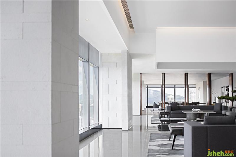 第一次置身于項目,正是華燈初上時刻,這里,幾乎收納了深圳整座城市的美與繁華。我們決意把城市作為室內(nèi)背景,以極簡干凈的會所設計,來收攬這座年輕城市的現(xiàn)代氣質(zhì)、寬廣氣象與自由精神。
