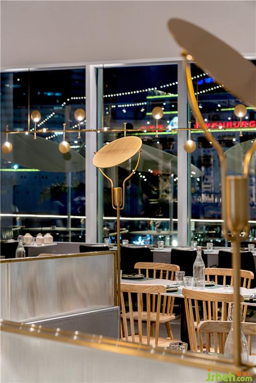 混凝土磚、鏡面、黃銅、藝術(shù)玻璃......埂上設(shè)計在材料選擇上,不僅僅考慮造價和純粹技術(shù)的因素,同時考慮情感體驗、藝術(shù)想象。餐廳西面擁有廣闊的觀景視野,搭配大面的落地玻璃,將自然引入空間,讓人眺望海上世界美麗的海景與夜景。